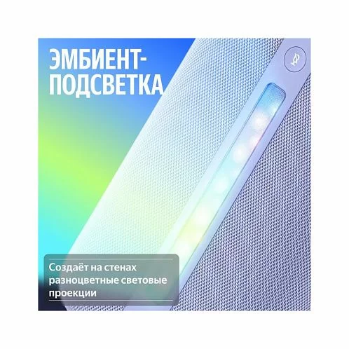- Эмбиент-подсветка: На задней панели колонки расположена эмбиент-подсветка, способная воспроизводить 16 миллионов цветов, позволяя создавать различные сценарии освещения и атмосферу под настроение.