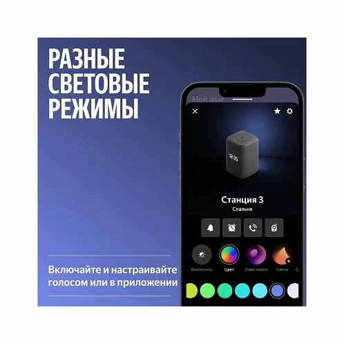 - Круговая LED-подсветка: В верхней части колонки также присутствует круговая LED-подсветка для визуальной обратной связи при взаимодействии с Алисой, срабатывании таймеров и напоминаний.
