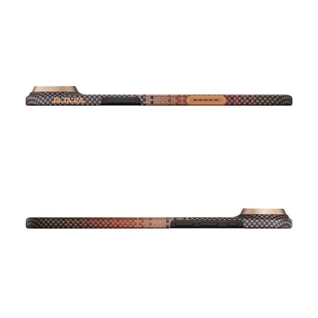 Pitaka Ultra-Slim Cace — ультратонкий и невероятно лёгкий чехол, созданный для ценителей безупречного стиля и высоких технологий. Изготовлен из прочного арамидного волокна, которое надёжно защищает ваш iPhone, сохраняя его изящный дизайн. Полная совместимость с MagSafe обеспечивает быструю беспроводную зарядку и идеальное крепление аксессуаров.