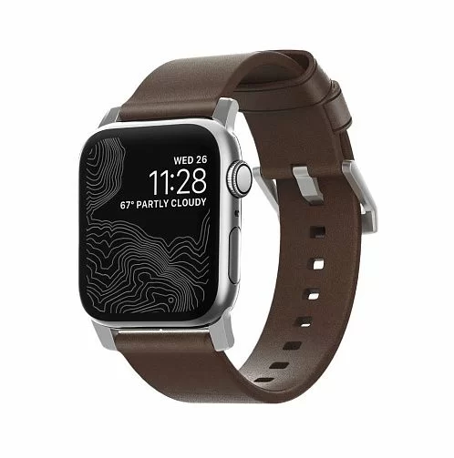 Ремешок Nomad Leather Strap Brown для Apple Watch 49/45/44/42mm, коричневый/серебро