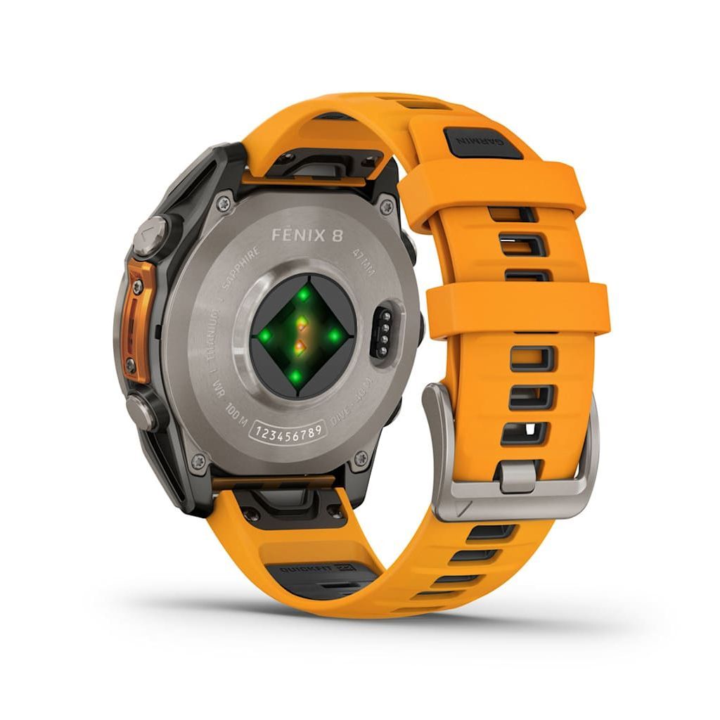 Умные часы Garmin Fenix 8 Sapphire AMOLED 47 мм, титан, ремешок - силикон, оранжевый/графит