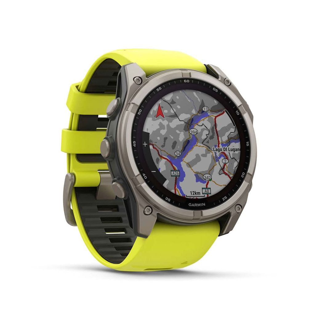Умные часы Garmin Fenix 8 Sapphire Solar 51 мм, титан, ремешок - силикон, жёлтый/графит