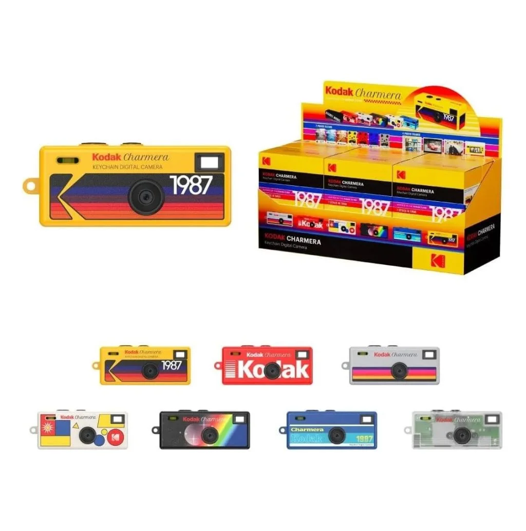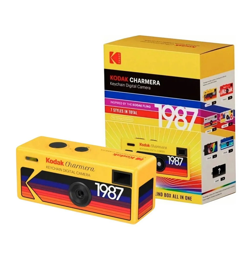 Цифровая камера-брелок Kodak Charmera 1987 — крошечная «игрушечная» цифровая камера от Kodak и производственного партнёра Reto (Гонконг). Её идея — максимум веселья и минимум сложностей: ретро-стиль и вывод 1,6 Мп делают кадры похожими на снимки с цифровых камер конца 1990-х.