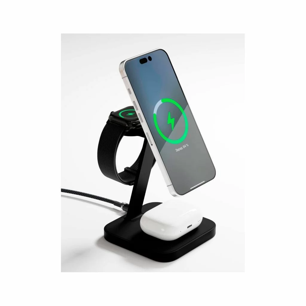 • 3-в-1: Одновременная зарядка смартфона, часов и наушников.