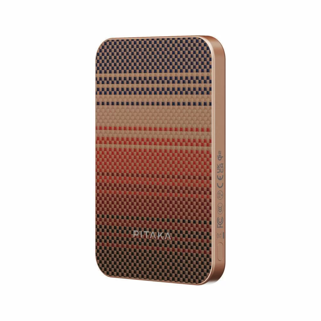 Эстетика и тактильные ощущения не менее важны: корпус выполнен из прочного арамидного волокна с плетёной текстурой и матовым металлическим покрытием. Такое сочетание не только приятно на ощупь, но и гармонично смотрится с чехлом в том же цвете. Компактность, стиль и продвинутая технология зарядки делают Pitaka Power Bank Qi2 отличным выбором для современных пользователей.